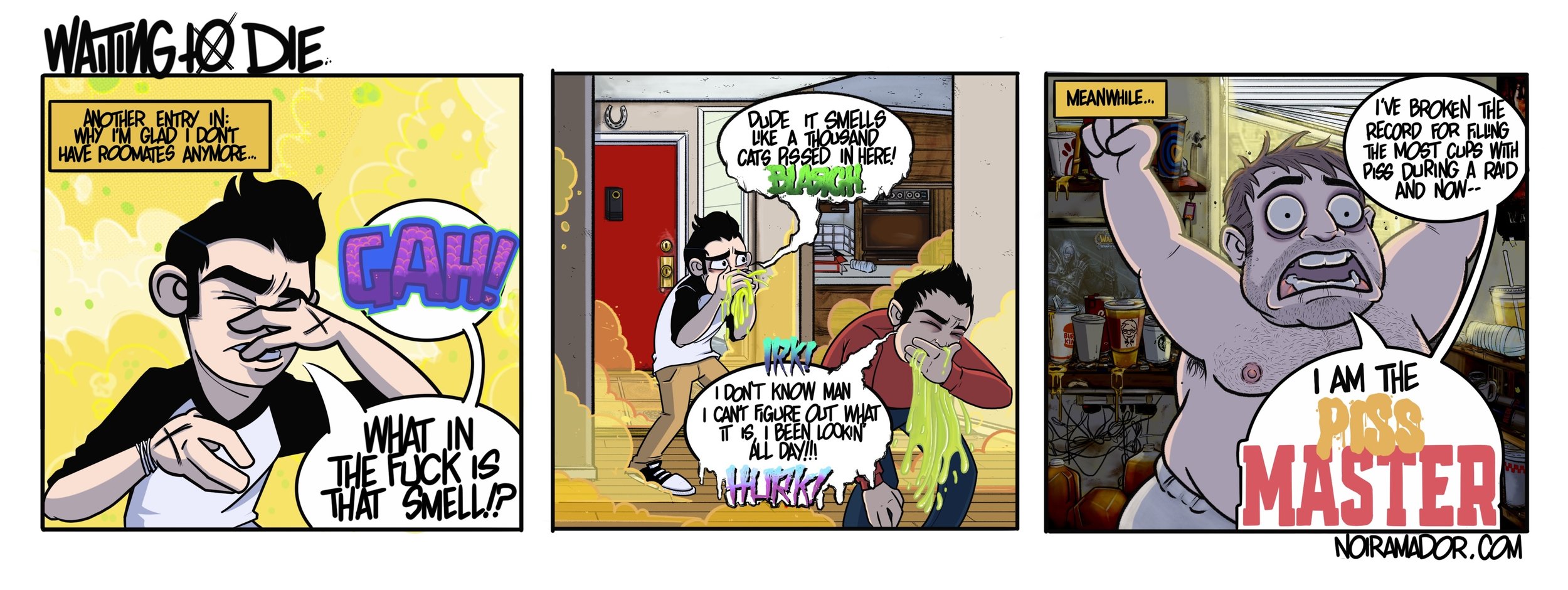 “Yeah, it’s all cups from that gross-ass fucking Mexican spot Aldaberto’s—” You pause mid-sentence as your eyes dart to what’s cradled like a newborn in his right arm. You notice what he’s just brought home to add to his cholesterol and arterial fat. The neurons in your brain are reappearing from the bleach-induced fog as you slowly realize this repulsive orc of a man is holding the exact same cup that let loose the tidal wave of urine now covering the driveway.