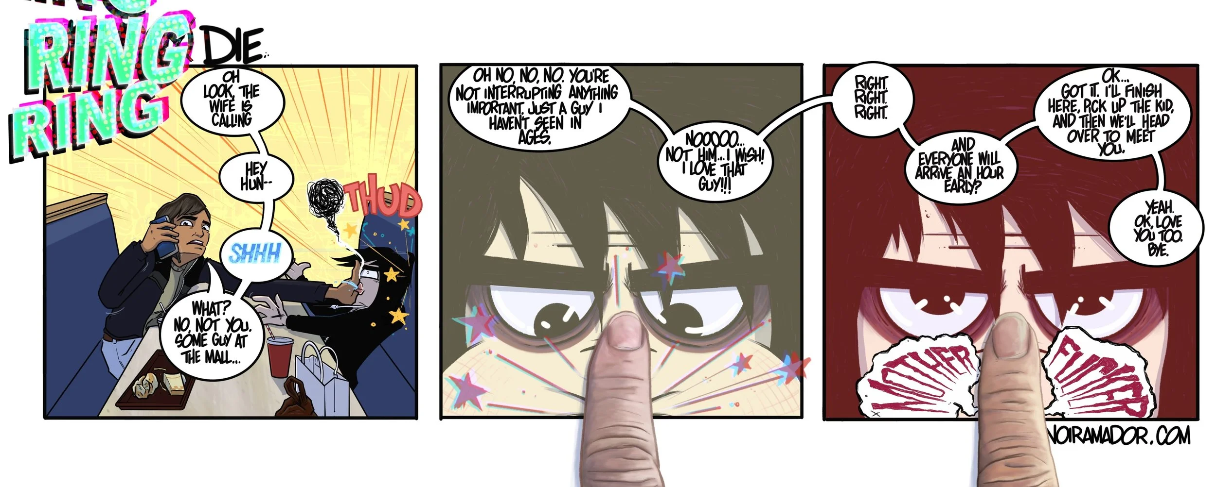 The finger over the mouth, smashing the head into the booth in the first panel was a bit tricky. I still don’t think I nailed it 100%, but at some point you have to move on.